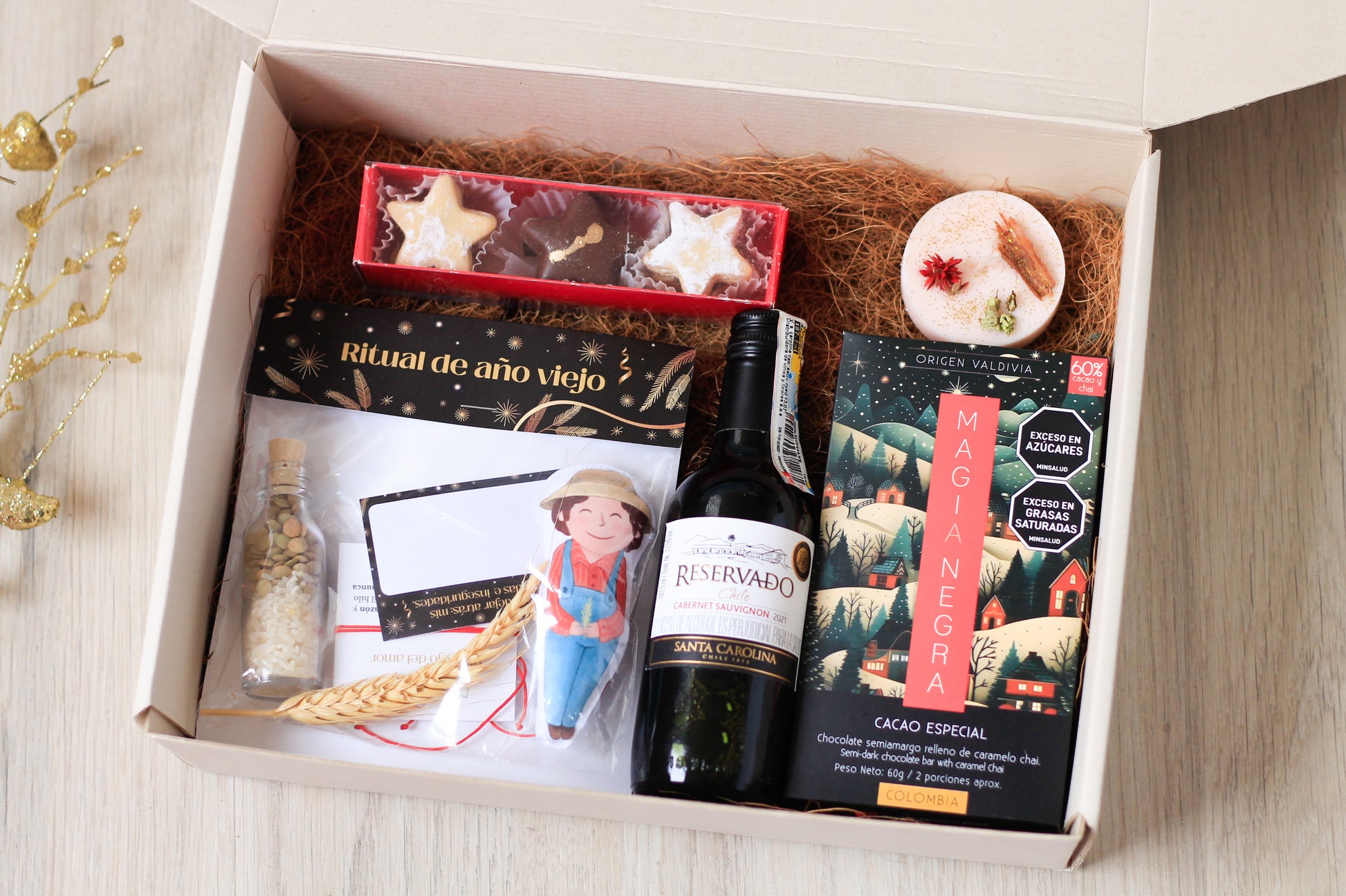 Ritual de Año Viejo: un set simbólico con elementos tradicionales para limpiar energías y atraer abundancia en el año que comienza.